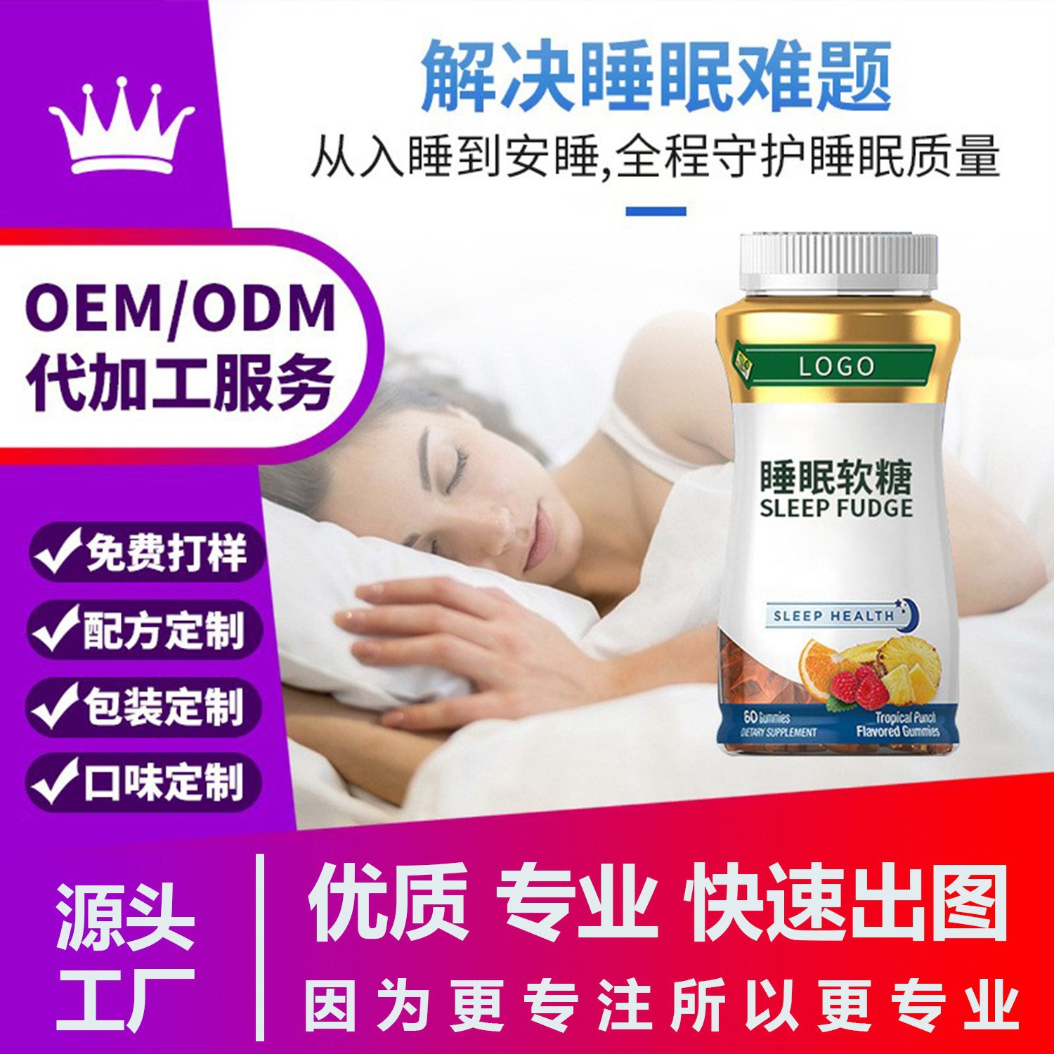睡眠軟糖oem褪黑色素軟糖 貼牌定制