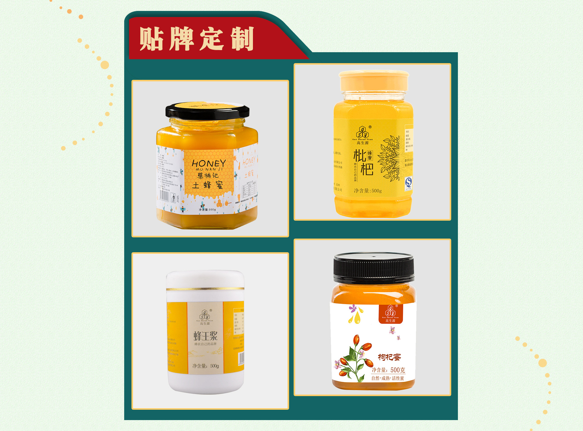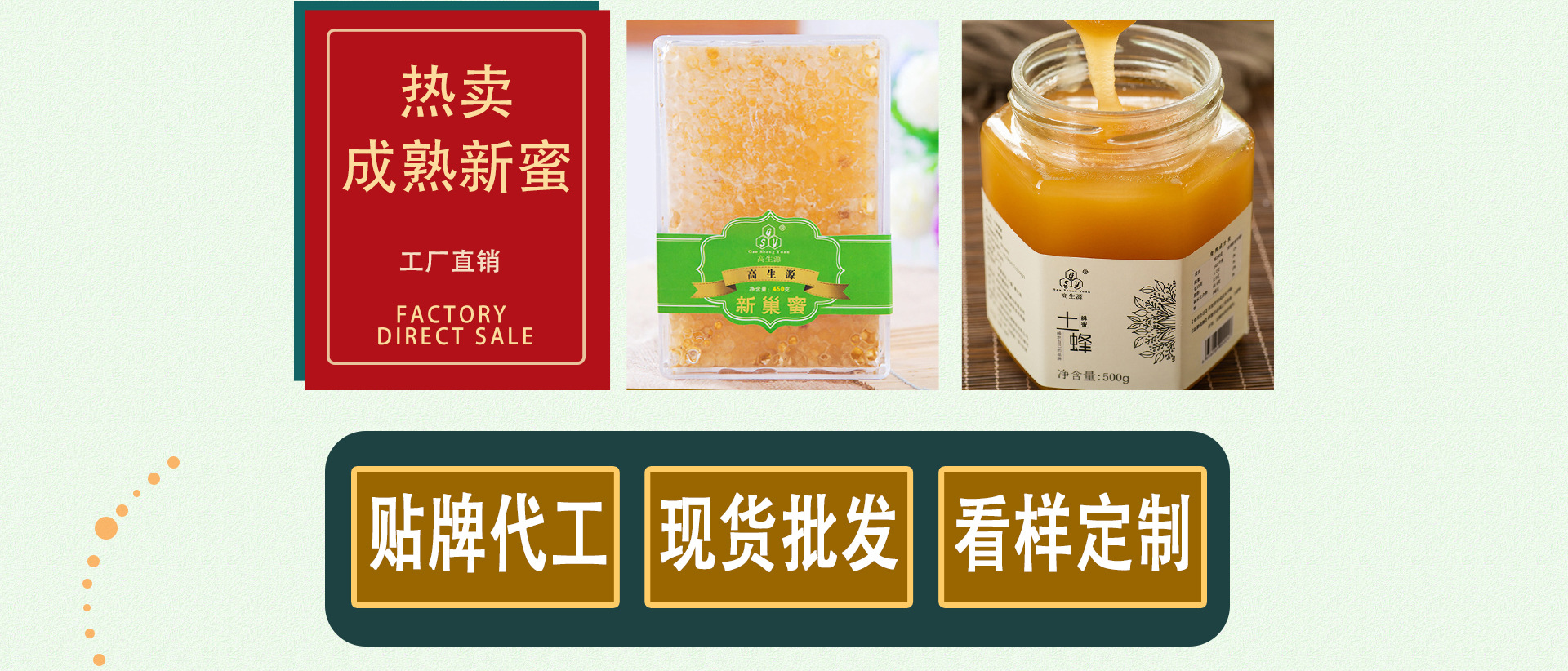 安徽省高生源蜂業(yè)有限公司企業(yè)簡(jiǎn)介: 高生源蜂業(yè)蜂業(yè)有限公司位于池州市,整個(gè)城市環(huán)境優(yōu)美,無(wú)化工生產(chǎn)企業(yè),無(wú)污染;毗鄰長(zhǎng)江青山綠水,非常適宜設(shè)置食品生產(chǎn)企業(yè)加工生產(chǎn),公司主產(chǎn)“高生源”牌蜂蜜、蜂王漿、蜂花粉等系列產(chǎn)品,擁有自主知識(shí)產(chǎn)權(quán)的蜜蜂養(yǎng)殖基地,蜂產(chǎn)品開(kāi)發(fā)等專(zhuān)業(yè)技術(shù)的樅陽(yáng)縣蜜蜂科學(xué)研究所;公司依托研究所擁有公司加農(nóng)戶(hù)加基地的經(jīng)驗(yàn)?zāi)J?,滾動(dòng)式發(fā)展,目前公司已發(fā)展重點(diǎn)養(yǎng)蜂戶(hù)300戶(hù),蜂群15000箱,年蜂蜜產(chǎn)量達(dá)350噸,蜂王漿10噸,花粉8噸,蜂膠1噸,產(chǎn)品完全走產(chǎn)供銷(xiāo)一體化之路,銷(xiāo)往全國(guó)各地,以?xún)?yōu)良的產(chǎn)品質(zhì)量,優(yōu)質(zhì)的服務(wù),奉獻(xiàn)給廣大客戶(hù)。 高生源品牌先后榮獲安徽省民營(yíng)科技企業(yè),安徽省旅游商品定點(diǎn)生產(chǎn)企業(yè),安慶市知名商標(biāo),并榮獲2014年縣級(jí)龍頭企業(yè)一等獎(jiǎng),2015年獲得市級(jí)龍頭企業(yè)稱(chēng)號(hào),2016年獲得315頒發(fā)的互聯(lián)網(wǎng)信得過(guò)企業(yè)。