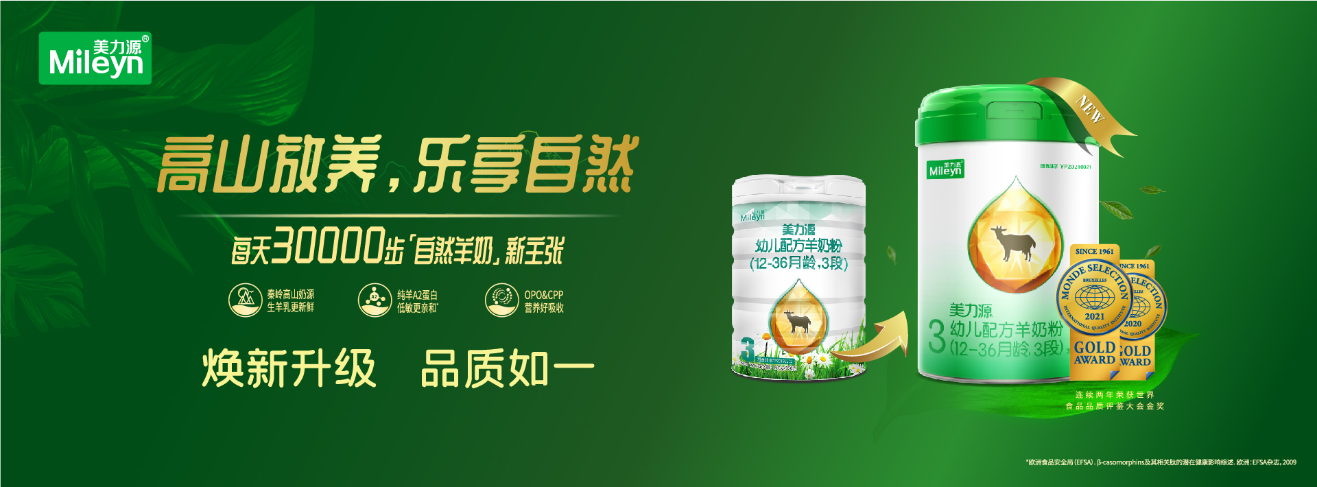 美力源乳業(yè)集團有限公司,是從事乳制品研發(fā)、生產和銷售的專業(yè)化乳品企業(yè),創(chuàng)建于2008年初,地處陜西省咸陽市,擁有集奶源基地、研發(fā)中心、生產基地和銷售中心為一體的產業(yè)體系,并打造了嬰幼兒配方羊奶粉、兒童奶粉、成人羊奶粉生命全階段營養(yǎng)呵護矩陣,為中國億萬家庭提供營養(yǎng)、健康、安全的乳制品。奶源地特別甄選北緯34°秦嶺高山牧場,遵循奶山羊天性,自然放養(yǎng),食秦嶺百草,飲山澗泉水,所產羊奶更優(yōu)質、更營養(yǎng)。10余年匠心,專注營養(yǎng)研究,秉持創(chuàng)新科技研發(fā),榮獲“高新技術企業(yè)”、“世界羊乳加工樣板工廠”、“世界食品品質評鑒大會金獎”、“中國羊奶十大品牌”、“中國乳制品工業(yè)協(xié)會質量金獎”等獎項。