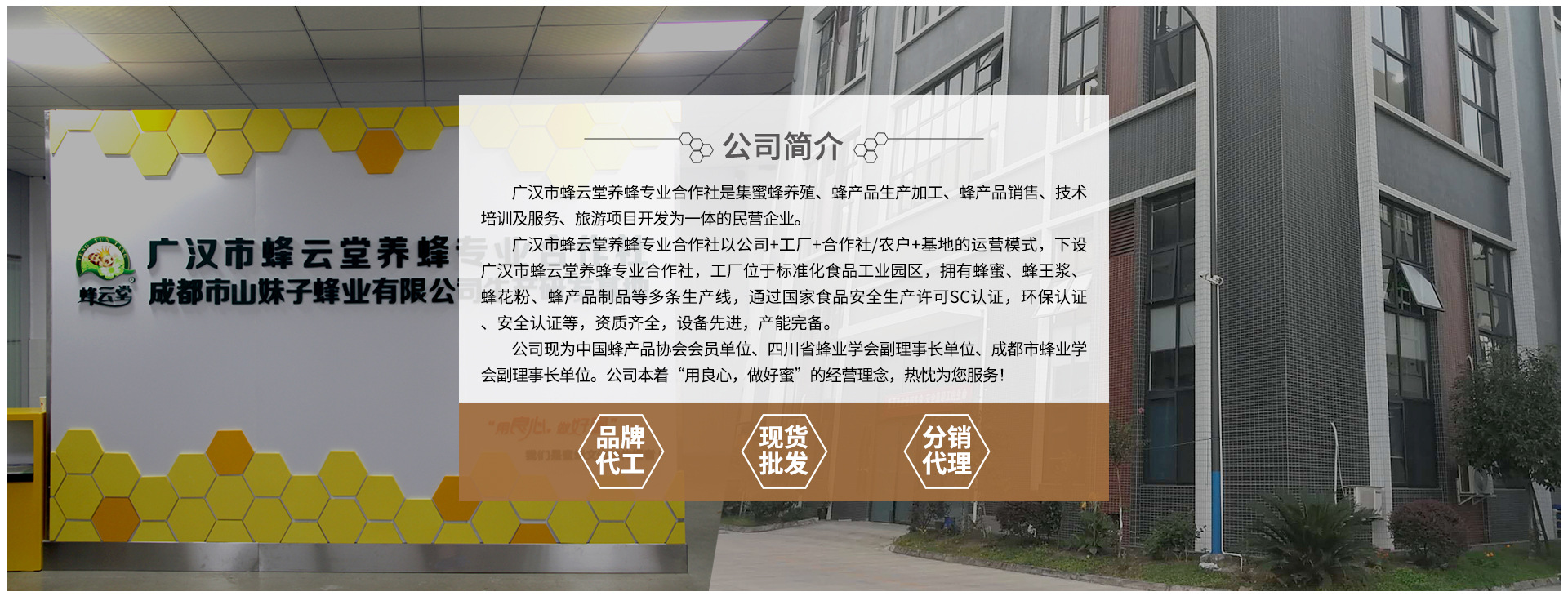 廣漢市蜂云堂養(yǎng)蜂專業(yè)合作社,專注于蜜蜂養(yǎng)殖與采集歷史30多年,以公司+工廠+合作社/農(nóng)戶+基地的運營模式,集蜜蜂養(yǎng)殖、產(chǎn)品加工與銷售,并致力于一二三產(chǎn)業(yè)融合發(fā)展的現(xiàn)代化企業(yè)。 蜂云堂系列產(chǎn)品遠銷港澳地區(qū),產(chǎn)品榮獲第七屆中國國際農(nóng)產(chǎn)品交易會金獎、中國湖南第十屆(國際)農(nóng)博會金獎,銷售渠道覆蓋線上線下,質(zhì)量穩(wěn)定可靠,品牌知名度高。 公司本著“用良心,做好蜜”的經(jīng)營理念,熱忱為您服務(wù)!期待與您合作共贏!