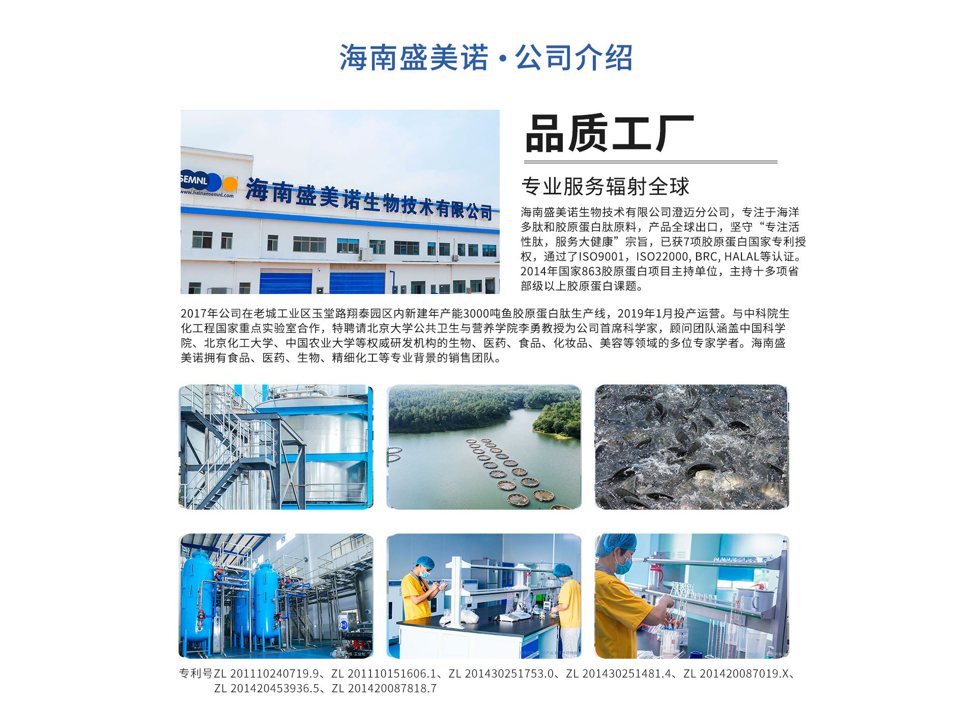 海南盛美諾生物技術(shù)有限公司澄邁分公司是專業(yè)的膠原蛋白、膠原蛋白肽原料生產(chǎn)商和供應(yīng)商,擁有完整、科學(xué)的質(zhì)量管理體系。海南盛美諾多年深耕“海洋多肽和膠原蛋白肽”,一直專注于膠原蛋白肽的研發(fā)技術(shù)和制備工藝,提供綠色天然、健康優(yōu)質(zhì)、科學(xué)有效的膠原蛋白,致力于打造大健康領(lǐng)域的自有品牌。主營產(chǎn)品:魚膠原蛋白肽、深海鱈魚膠原蛋白肽、彈性蛋白肽、非變性II型膠原蛋白、水解II型膠原蛋白、牡蠣肽、牛膠原蛋白肽。