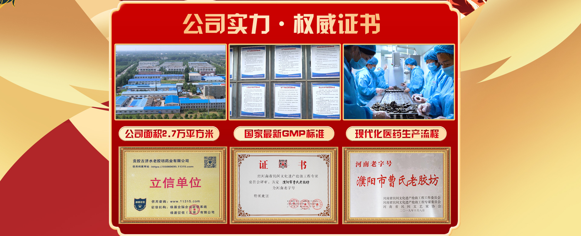 制膠世家,始于1876年,臺前縣隋朝貢膠藥業(yè)有限公司是阿膠、阿膠塊、阿膠糕、阿膠膏方、古法紅糖等產(chǎn)品專業(yè)生產(chǎn)加工的公司,擁有完整、科學的質(zhì)量管理體系。隋朝貢膠品牌產(chǎn)品源于1876年始,至今已有百年歷史,隋朝貢膠歷年來以甘肅、內(nèi)蒙、新疆等地的優(yōu)質(zhì)黑驢皮為原料,利用地下潛流之古濟水,在歷代傳統(tǒng)配方的基礎(chǔ)上加之冰糖、生地、人參、甘草、大棗、枸杞、珍貴中藥等佐料,精心熬制而成。隋朝貢膠至今已有300余年的的歷史,明代創(chuàng)始人曹振平、清代傳承人曹文彩,民國時期繼承人曹洪軍、新中國成立后繼承人曹先春、曹存立、曹之營等至今已有八代,其產(chǎn)品為古老的杏林奇葩!擁有非物質(zhì)文化遺產(chǎn),老字號等證書.臺前縣隋朝貢膠藥業(yè)有限公司的誠信、實力和產(chǎn)品質(zhì)量獲得業(yè)界的認可。歡迎各界朋友蒞臨參觀、指導和業(yè)務(wù)洽談。