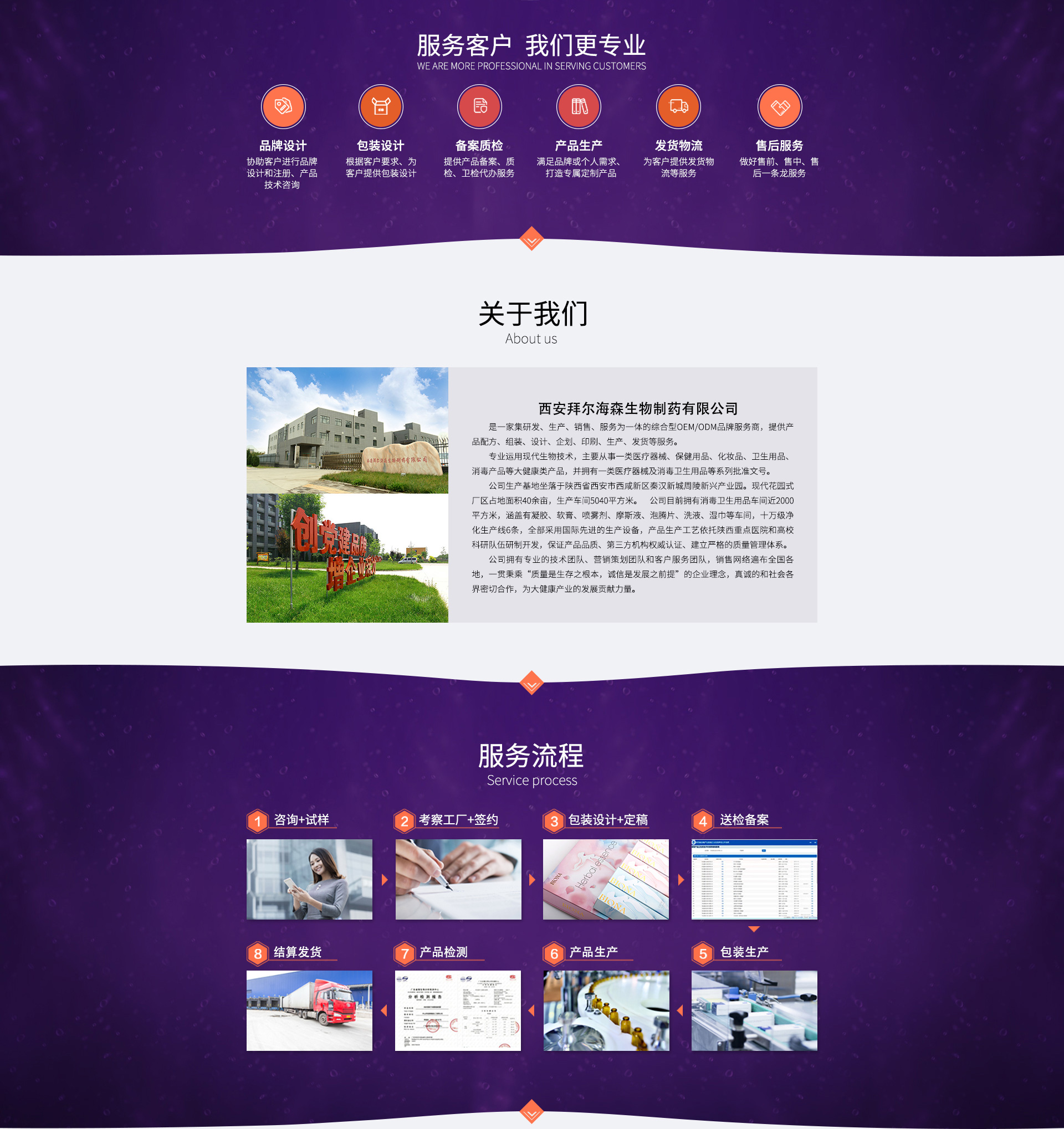 西安拜爾海森生物制藥有限公司,是一家集研發(fā)、生產、銷售、服務為一體的綜合型OEM/ODM品牌服務商,提供產品配方、組裝、設計、企劃、印刷、生產、發(fā)貨等服務。 專業(yè)運用現(xiàn)代生物技術,主要從事一類醫(yī)療器械、保健用品、化妝品、衛(wèi)生用品、消毒產品等大健康類產品,并擁有一類醫(yī)療器械及消毒衛(wèi)生用品等系列批準文號。 公司生產基地坐落于陜西省西咸新區(qū)秦漢新城周陵新興產業(yè)園?,F(xiàn)代花園式廠區(qū)占地面積40余畝,生產車間5040平方米。 公司目前擁有消毒衛(wèi)生用品車間近2000平方米,涵蓋有凝膠、軟膏、噴霧劑、摩斯液、泡騰片、洗液、濕巾等車間,十萬級凈化生產線6條,全部采用國際先進的生產設備,產品生產工藝依托陜西重點醫(yī)院和高??蒲嘘犖檠兄崎_發(fā),保證產品品質、第三方機構權威認證、建立嚴格的質量管理體系。 公司擁有專業(yè)的技術團隊、營銷策劃團隊和客戶服務團隊,銷售網絡遍布全國各地