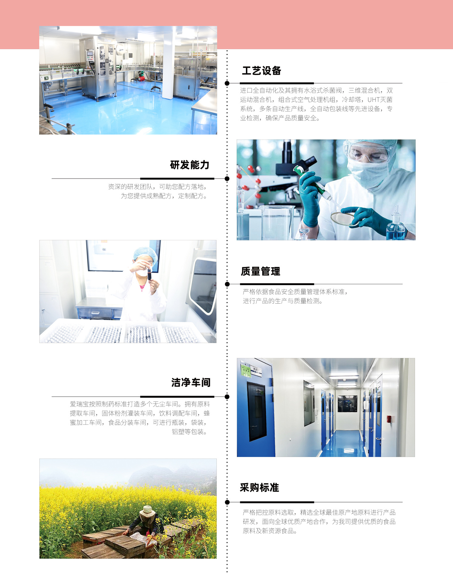 愛瑞寶(北京)生物科技有限公司是一家集科研開發(fā)、產(chǎn)品制造、委托加工為一體的綜合性企業(yè)。公司座落于中關(guān)村科技園金橋科技產(chǎn)業(yè)基地聯(lián)東U谷中區(qū),斥資3000多萬建設(shè)了專業(yè)化保健食品、特醫(yī)食品、功能食品、新資源食品的研發(fā)生產(chǎn)工廠。公司自成立之初就組建了以國內(nèi)知名研究院、臨床醫(yī)學(xué)專家、臨床營養(yǎng)師為主導(dǎo)的研發(fā)團(tuán)隊(duì),堅(jiān)持以“科學(xué)、專業(yè)、嚴(yán)謹(jǐn)”為核心,致力于推動(dòng)中國大健康產(chǎn)業(yè)的發(fā)展,實(shí)現(xiàn)對更多人的專業(yè)營養(yǎng)關(guān)懷 愛瑞寶擁有強(qiáng)大的科研成果轉(zhuǎn)化實(shí)力。 生產(chǎn)基地設(shè)有完善的產(chǎn)品研發(fā)中心、質(zhì)量檢測中心,配備了國內(nèi)外先進(jìn)的實(shí)驗(yàn)設(shè)備高效液相色譜儀、紫外-可見分光光度計(jì)、島津6800原子吸收光譜儀等。嚴(yán)格按照藥品生產(chǎn)質(zhì)量管理規(guī)范(GMP)認(rèn)證建設(shè)了10萬級潔凈車間,擁有保健食品的液體灌裝車間、特醫(yī)食品的粉劑灌裝車間、壓片糖果車間、食品生產(chǎn)車間等數(shù)條專業(yè)化生產(chǎn)線。其中固體飲料年產(chǎn)能達(dá)到1500萬袋、飲料年產(chǎn)能達(dá)到96噸