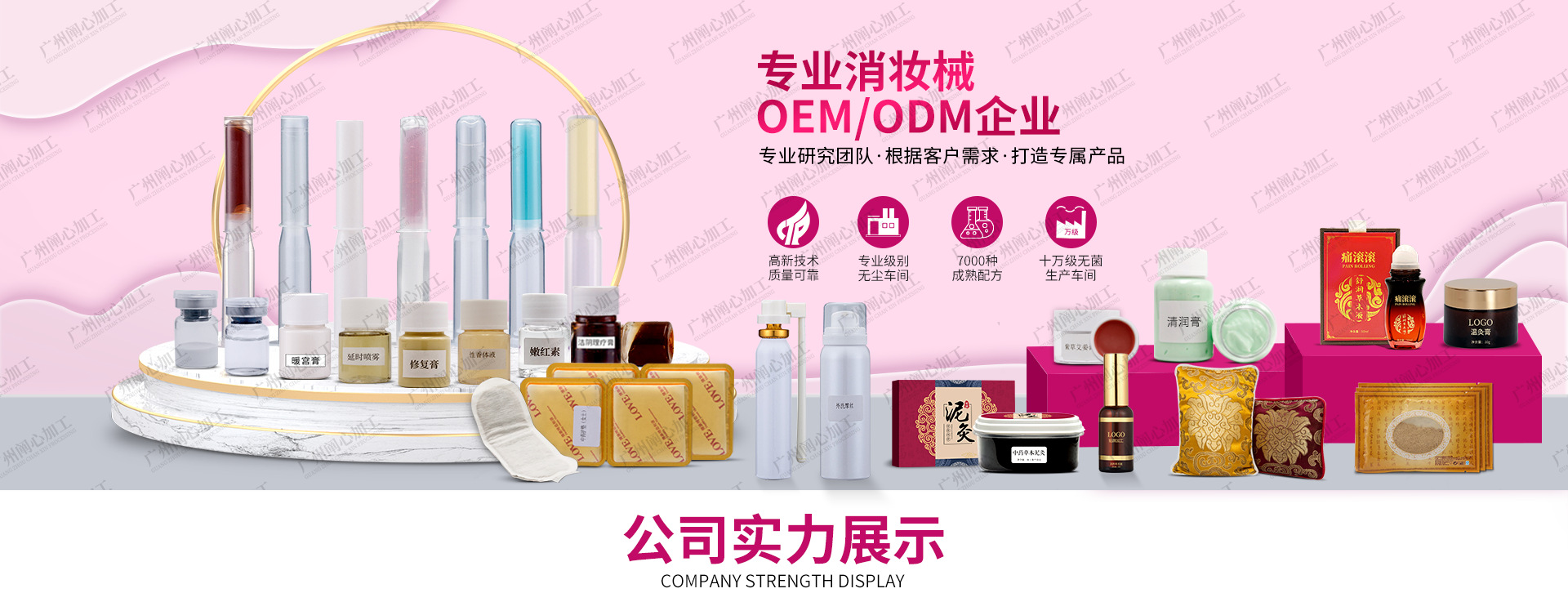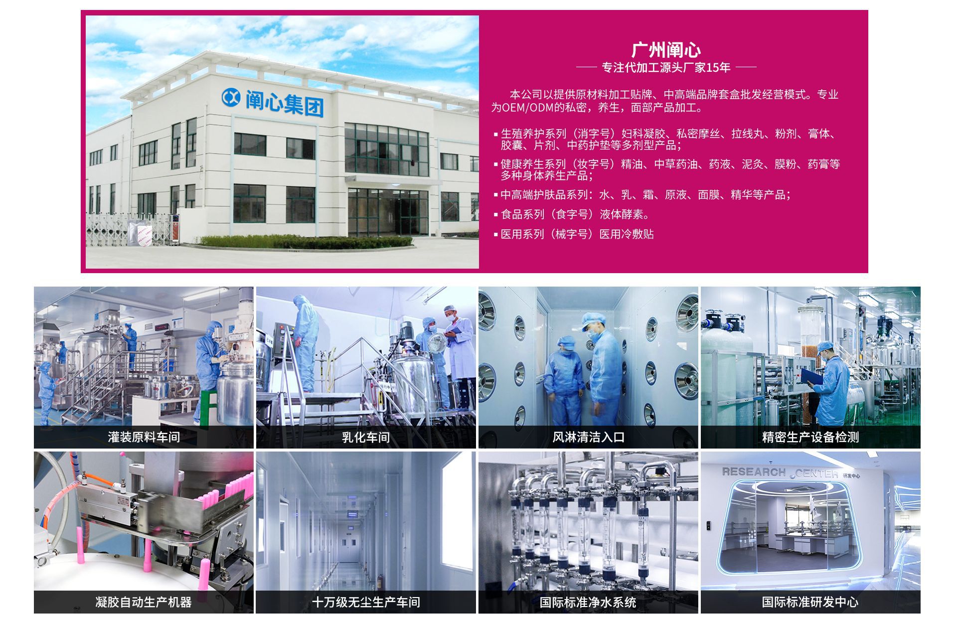 廣州闡心生物科技有限公司是廣州闡心控股有限公司旗下全資子公司。 闡心控股一家集研發(fā)、生產(chǎn)、銷售、培訓(xùn)、策劃為一體的大型健康企業(yè)集團(tuán),產(chǎn)品涵蓋美容護(hù)膚產(chǎn)品、健康養(yǎng)生產(chǎn)品、生殖養(yǎng)護(hù)產(chǎn)品、保健食品。 廣州消字號(hào)工廠,支持實(shí)地驗(yàn)廠擁有一流的研發(fā)團(tuán)隊(duì)、一流的生產(chǎn)環(huán)境、一流的生產(chǎn)設(shè)備,可日產(chǎn)30萬支婦科凝膠、300萬粒私密膠囊、美容套盒10萬套、軟管3萬支、玻璃瓶8萬支、安瓶25萬支、面膜100萬片。集團(tuán)主營(yíng)產(chǎn)品有:生殖養(yǎng)護(hù)系列:婦科凝膠、私密摩絲、拉線丸、粉劑、膏體、膠囊、片劑、中藥護(hù)墊等多劑型產(chǎn)品;健康養(yǎng)生系列:精油、中草藥油、藥液、泥灸、膜粉、藥膏等多種身體養(yǎng)生產(chǎn)品;中高端護(hù)膚品系列:水、乳、霜、原液、面膜、精華等產(chǎn)品;食品系列:液體酵素。 熱誠(chéng)歡迎微商、電商、分銷、直銷、連鎖、實(shí)體客戶前來洽談合作,上萬種產(chǎn)品,任您挑選!